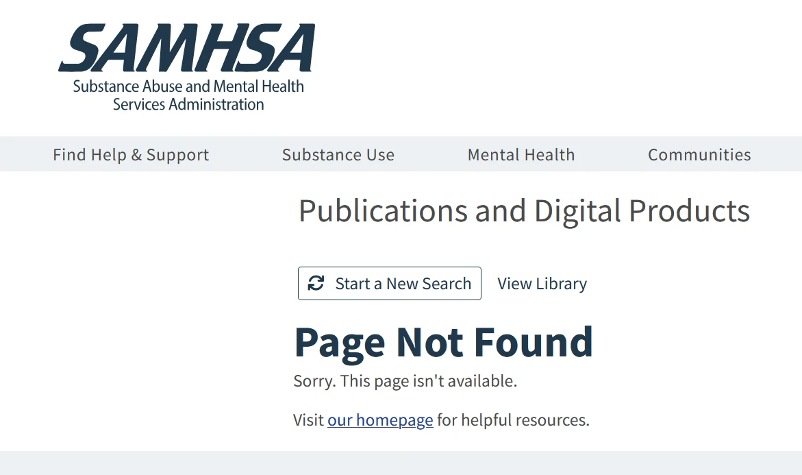 A further cursory search showed that a guide for adapting evidence based practices for under-resourced populations, as well as a guide for treating opioid use disorder during pregnancies have also been removed. A further search will likely reveal many other missing resources; as we find and catalog them we will work to return them to the world-wide-web.